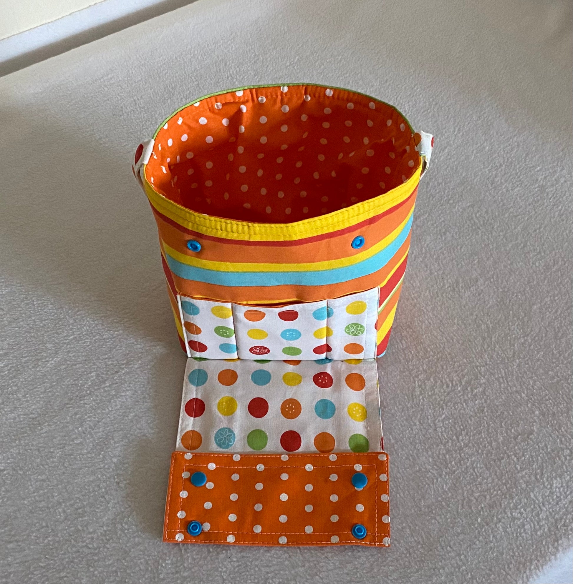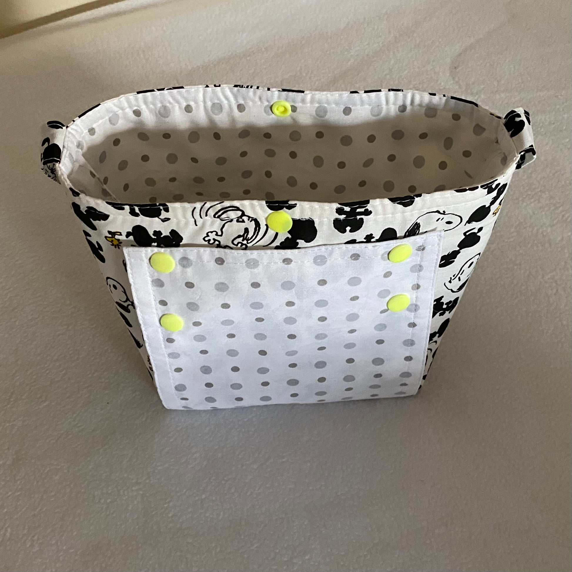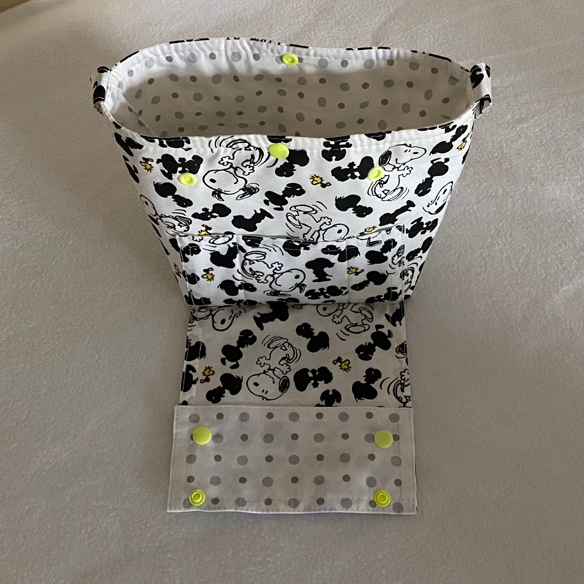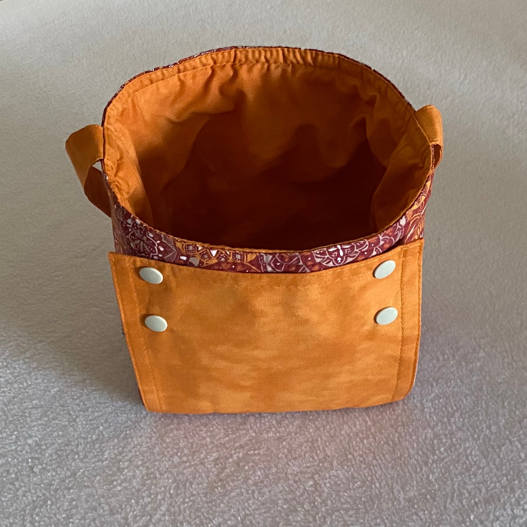 Die Tasche bietet Platz für Sockenwolle und Socken. Hinter der vorderen Klappe verbirgt sich eine Nadelgarage zum sicheren verstauen der angefangenen Socken. Zudem gibt es noch 3 kleine Steckfächer für weitere Nadeln, Schere etc.