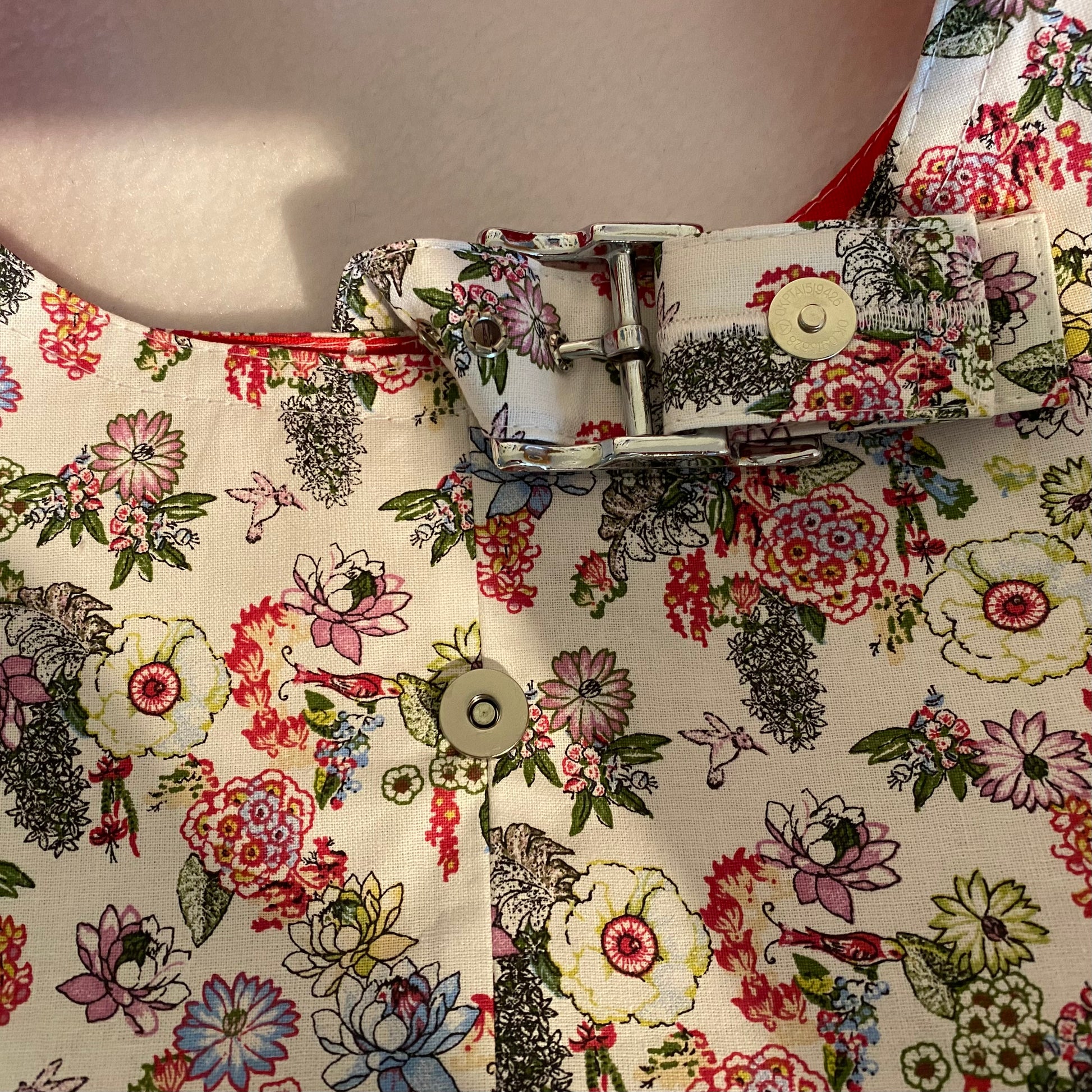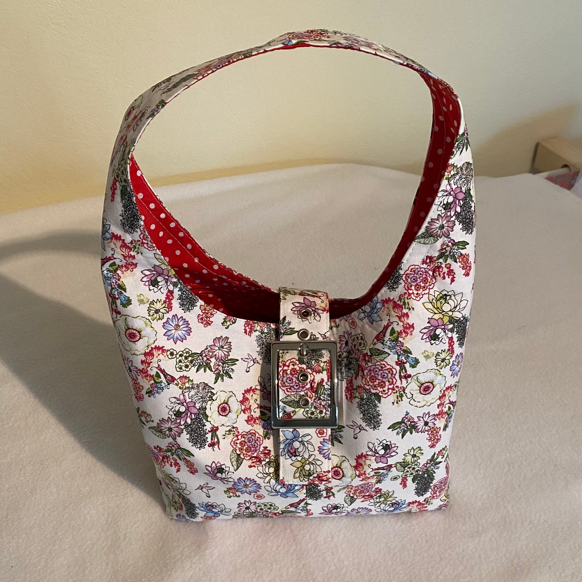 Süße kleine Handtasche aus Baumwollstoff. Innen hat sie ein Reißverschlussfach.