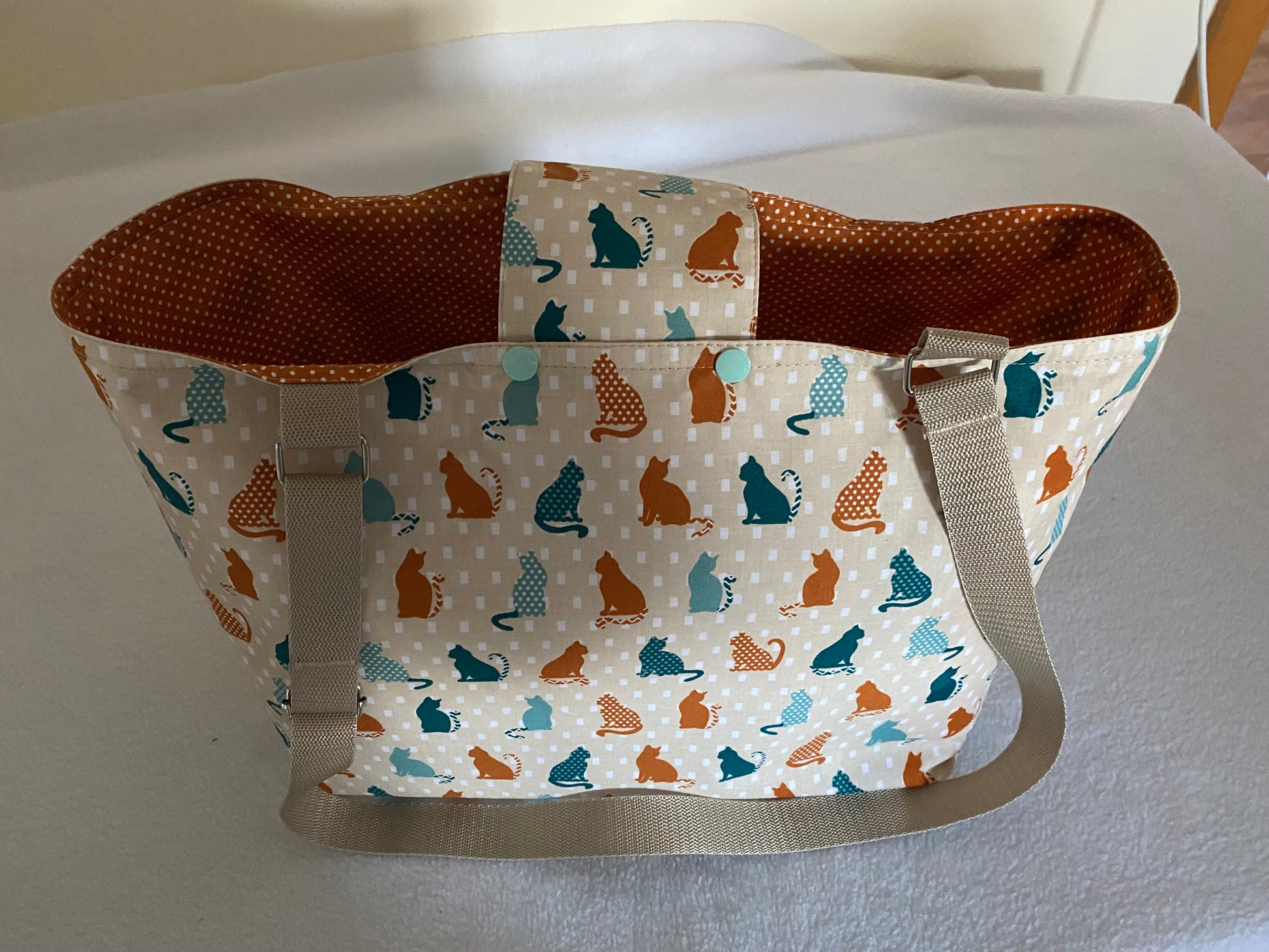 Die Tasche bietet Platz für Wolle/Bobbeltasche und das angefangene Projekt.